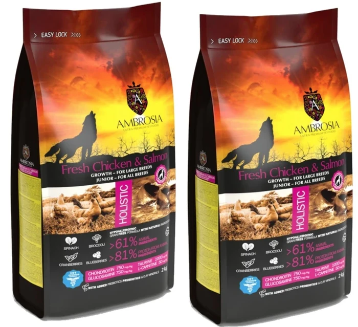 אמברוסיה מזון לגורי כלבים גזע גדול עוף וסלמון 12 ק"ג פוקסיה