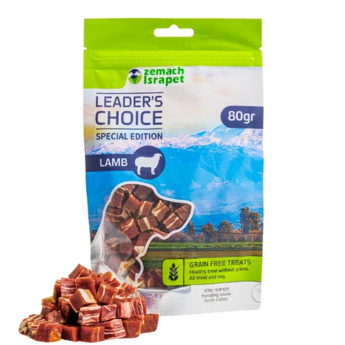 חטיף לכלב חטיפוני טלה חטיף איכותי נטול דגנים מגיע בצורת מרובעים קטנים ומתאים לכל סוגי הכלבים