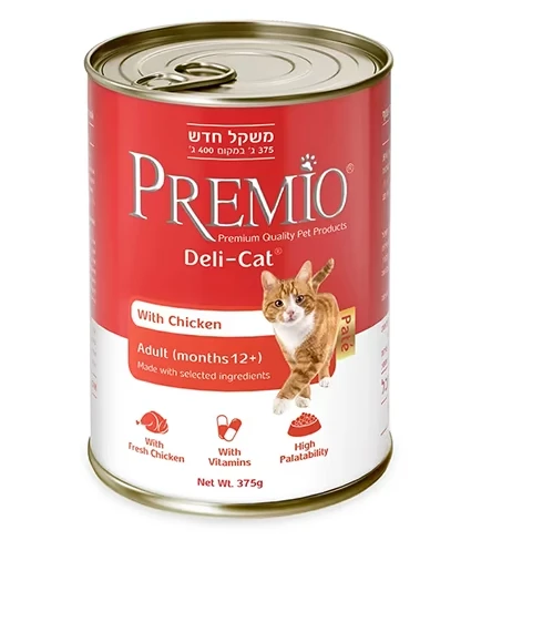 שימור פרמיו לחתול דלי-קט עוף 375 גרם