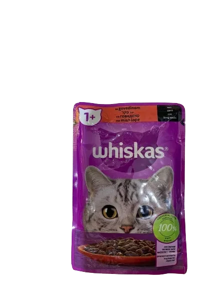 פאוץ’ מעדן לחתולים בוגרים ויסקס בקר ברוטב. מצויין לגיוון התפריט ומזון היבש של החתול. עשיר בחומרים מזינים ויטמינים ומינרלים התורמים רבות לבריאות החתול. חברת ויסקאס בעלת ניסיון של מעל 50 שנה ייצרה את המזון על מנת לענות ולספק את האינסטינקט הטבעי של חתול לצייד בשר. מזון לחתול תוצרת ויסקאס ארצות הברית.