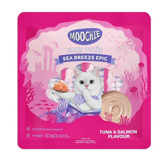 טונה, עמילן טפיוקה, סלמון, טאורין, שמן חמניות, צבע מאכל, תמצית דגים,שמרים יבשים (מנאן אוליגו-סוכרים), שמן סלמון, גואר גאם, קסנטן גאם.