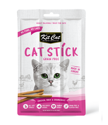 חטיף לחתולים מקלות קיט קט עוף ברווז וחמוציות 15 גרם