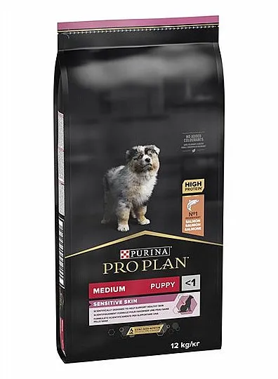 חלבון הסלמון הוא בעל ערך ביולוגי גבוהה ונעכלות טובה מאוד, גורי כלבים נהנים מהטעם הנהדר שלו ומגיבים אליו בצורה מעולה. תוצרת פורינה – פרו פלאן ארה"ב.Pro Plan Sensitive Skin Medium Puppy with OPTIDERMA Rich in Salmon