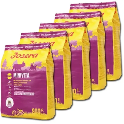 Josera Mini vita מזון על בסיס סלמון, בעל טעימות גבוהה עם פירות וצמחי מרפא במיוחד עבור כלבים מבוגרים. גודלה הקטן של כופתית המזון מסייע בגריסה נכונה של המזון ומפחית את הסיכון להיווצרות אבן שן אצל כלבים מבוגרים מגזע קטן. כמות המינרלים בג’וסרה ויטה מדודה, לשמירה ולהגנה על האיבריים הפנימיים, המזון עשיר בחומצות שומן איכותיות של סלמון לעור בריא ופרווה מבריקה. ללא גלוטן