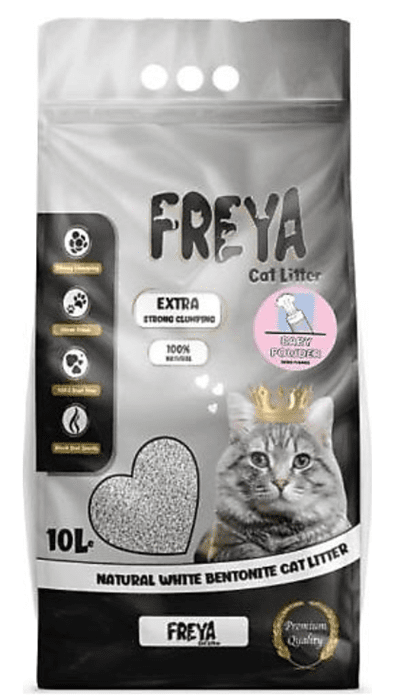 פרייה 10 ליטר חול מתגבש איכותי בריח בייבי פאודר.