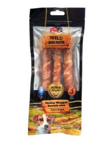 מקלות עור בקר לא מעובד בציפוי 100% בשר עוף בגודל 8 אינץ במשקל של 180 גרם לכלבים שאוהבים את החיים 3 יחידות במארז.