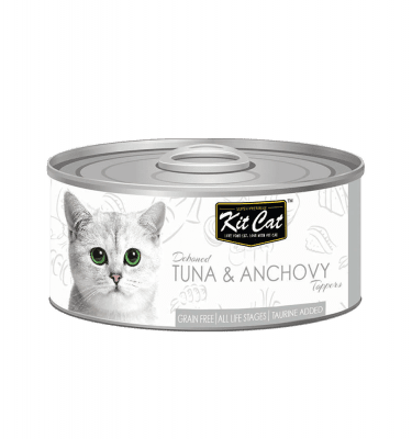 קיט קט שימור טונה ואנשובי , נוצר על ידי התזונאים של קיט קט שהם גם חובבי חתולים ועשוי מרכיבים טבעיים שנבחרו בקפידה, ללא תוספות צבעים או חומרים משמרים. שימור ללא דגנים מציעה לחתולכם איזון בריא בחומציות תזונה בריאה לתמיכה באורח חיים בריא, מה שמפחית את הסיכון לאבנים בכליות ולדלקת בדרכי השתן. עם בשר איכותי המכיל ויטמינים חיוניים, הנוסחה של קיט קט כוללת גם מנה אופטימלית של אומגה 3 וחומצות שומן אומגה 6 המקדמות לב בריא, עור ומעיל פרווה לחתולים שלך. בנוסף, דיאטה זו מכילה פרוקטוליגוסכרידים המקדמים מסלול עיכול בריא וטאורין לעיניים בריאות.