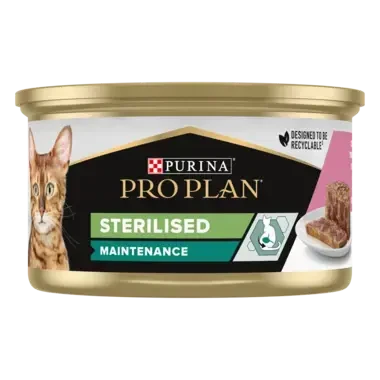 אוכל רטוב מלא עבור חתולים בוגרים לאחר סירוס / עיקור. פטה סלמון וטונה בפחית – כי לכל חתול העדפות משלו, ממסייע לשמירה על מסת גוף ומשקל תקין בזכות איזון רמות אחוז החלבון והשומן, מפותח בטכנולוגיה ייחודית המאפשרת צריכת מזון עם ערך תזונתי גבוה וסיוע בשמירה על איזון הנוזלים בגוף.