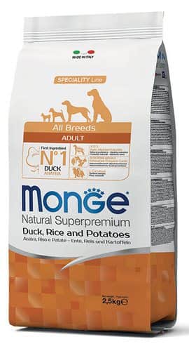 מונג' לכלב בוגר ברווז אורז ותפוח אדמה 2.5 ק''ג