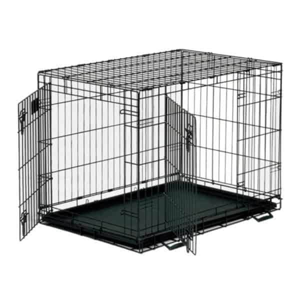 כלוב רשת בעל שתי דלתות (קדמית וצדדית), מתאים לאילוף וליצירת מקום נפרד לכלב. קל לניקוי. בתחתית הכלוב מגש מפלסטיק.