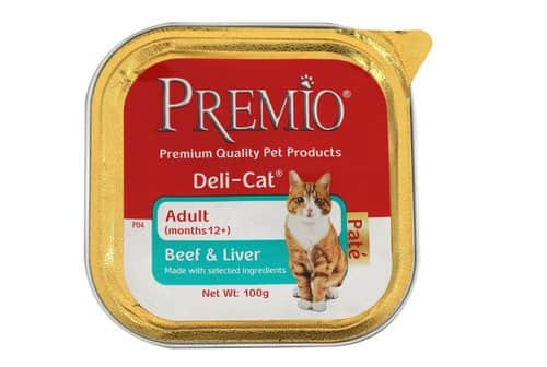 פרמיו שימור מזון מלא ומאוזן לחתול בוגר עם בקר וכבד. מעדן שהחתול שלכם לא יעמוד בפניו.