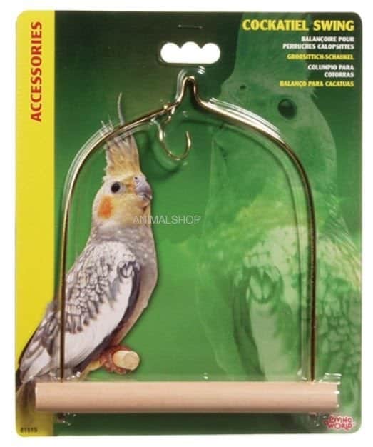 נדנדה לקוקטיילים ותוכים גדולים, משמשת כנקודת עמידה, העץ נעים למגע והנדנוד מרגיע ומפחית סטרס אצל הציפור. אורך 14 ס"מ גובה 17.5 ס"מ.