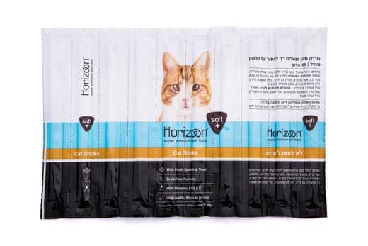חטיף הורייזן סטייק לחתול. בטעם סלמון ודג פורל. חטיף שהחתול לא יכול לעמוד בפניו ובעל טעימות אדירה