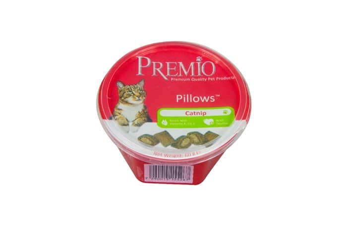 פרמיו Premio חטיף כריות לחתול-קטניפ 60 ג’ מועשר בויטמינים A,D3,E וטאורין.