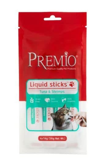חטיף רך לחתול פרמיו בטעם טונה ושרימפס פרמיו מזון משלים / חטיף שלוקים רך רטוב לחתול עם טונה ושרימפס – פינוק מושלם לחתולים ! תכולה : 4X14 גרם (סה"כ 56 גרם).