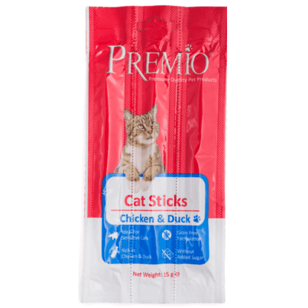 פרמיו סטיקס חטיף רך לחתולים בטעם עוף וברווז. הפינוק המושלם שכל חתול אוהב!