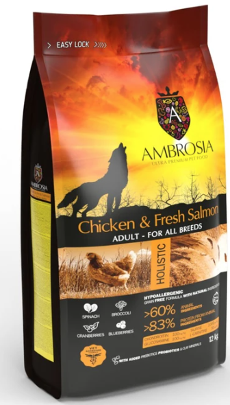 אמברוסיה מזון לכלב בוגר עוף וסלמון 12 ק"ג שק