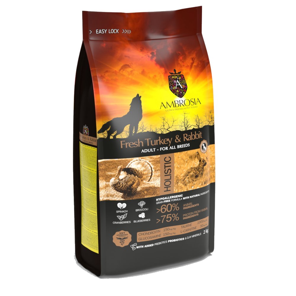 אמברוסיה מזון לכלב בוגר רגיש הודו וארנבת 12 ק"ג חום
