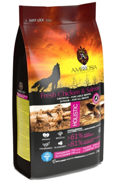 אמברוסיה מזון לגורי כלבים גזע גדול עוף וסלמון 12 ק"ג