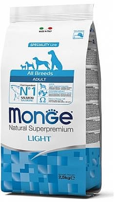 המזון מציג שילוב ייחודי הנותן פתרון מקיף לכלבים בררנים בעלי עודף משקל ורגישות למזון עם חלבון עוף. לאחר שנות מחקר רבות הצליחו במונג’ לייצר פורמולה מופחתת שומן שתהיה טעימה ברמה הגבוהה ביותר, כזו שכלבים יאכלו, יהנו וישבעו ותוך כדיי גם ירדו במשקל. הצירוף של התוכנות ההיפואלרגניות ביחד עם חלבון הסלמון והטונה, הופכים את המזון לעשיר מזין ובריאותי במיוחד.