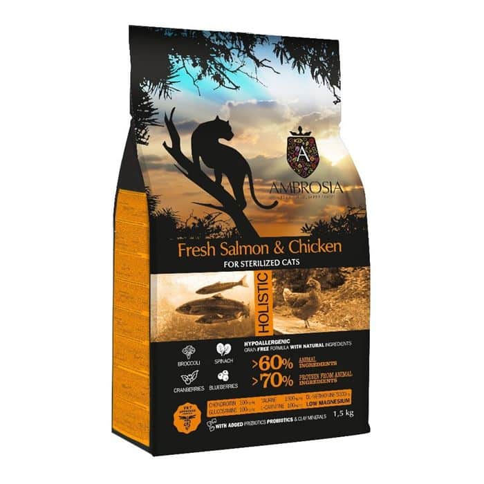 אמברוסיה מזון חתול מעוקר/מסורס סלמון ועוף 1.5 ק"ג