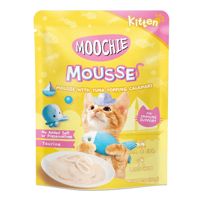 מוצ’י מוס טונה ונתחי קלמרי 70גר’ מזון משלים לחתולים מגיל חודשיים (שימורים)